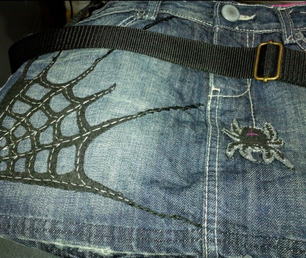 Egy tininek való farmerszoknya került a kezeink közé, melyet újrahasznosítottunk. A cipzárnál lefelé húzódó varrás díszítő tűzés volt, gyárilag tették rá, adta magát, hogy lógjon róla “valami”…