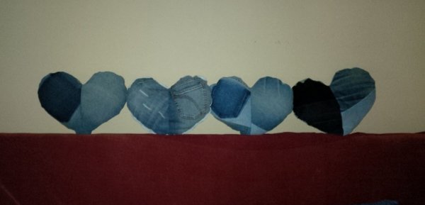 Mindig akadnak kisebb farmerdarabok, amelyeket összevarrva izgalmas felületet kaphatunk. Ezzel a módszerrel készült most néhány kedves, szív alakú farmer párna, melyeket pihe puha poliészter töltőanyaggal töltöttem meg.